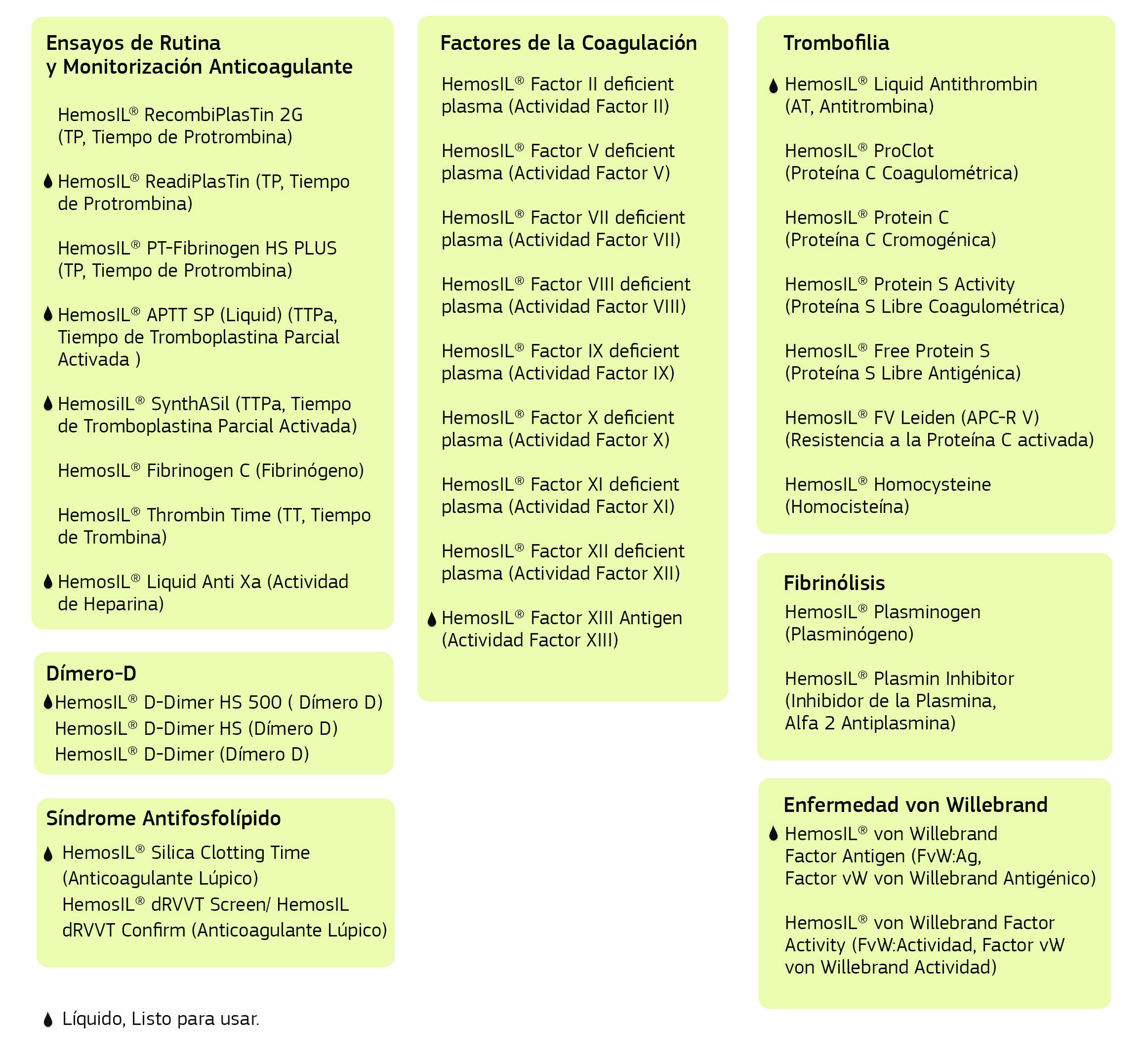Los sistemas ACL Elite Pro están optimizados para funcionar con un panel completo de pruebas HemosIL. Juntos ofrecen una solución completa de gestión de la enfermedad.